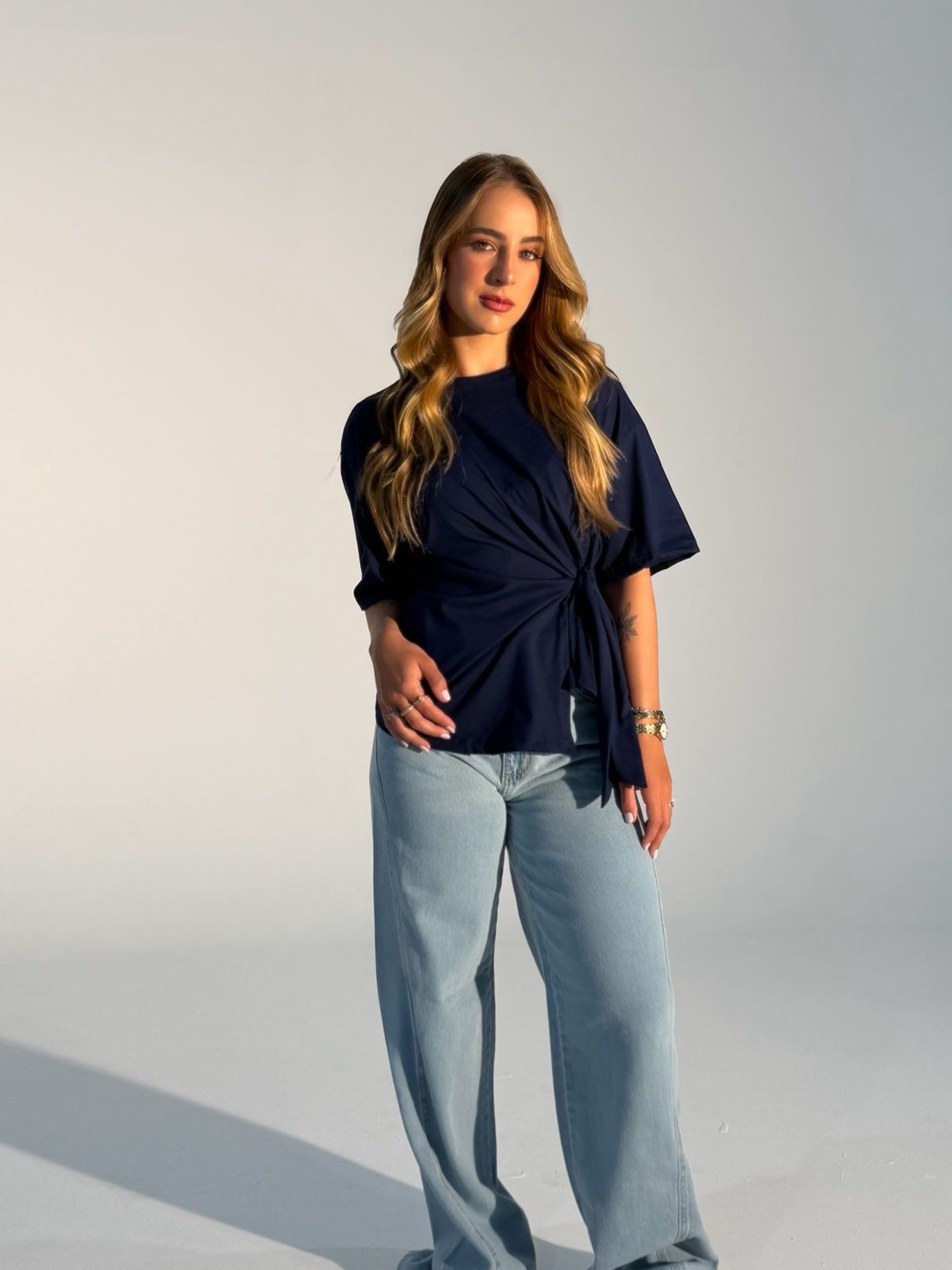 AdicionarT-shirt Feminina Paloma Azul Marinnho, moderna e com detalhe transpassado