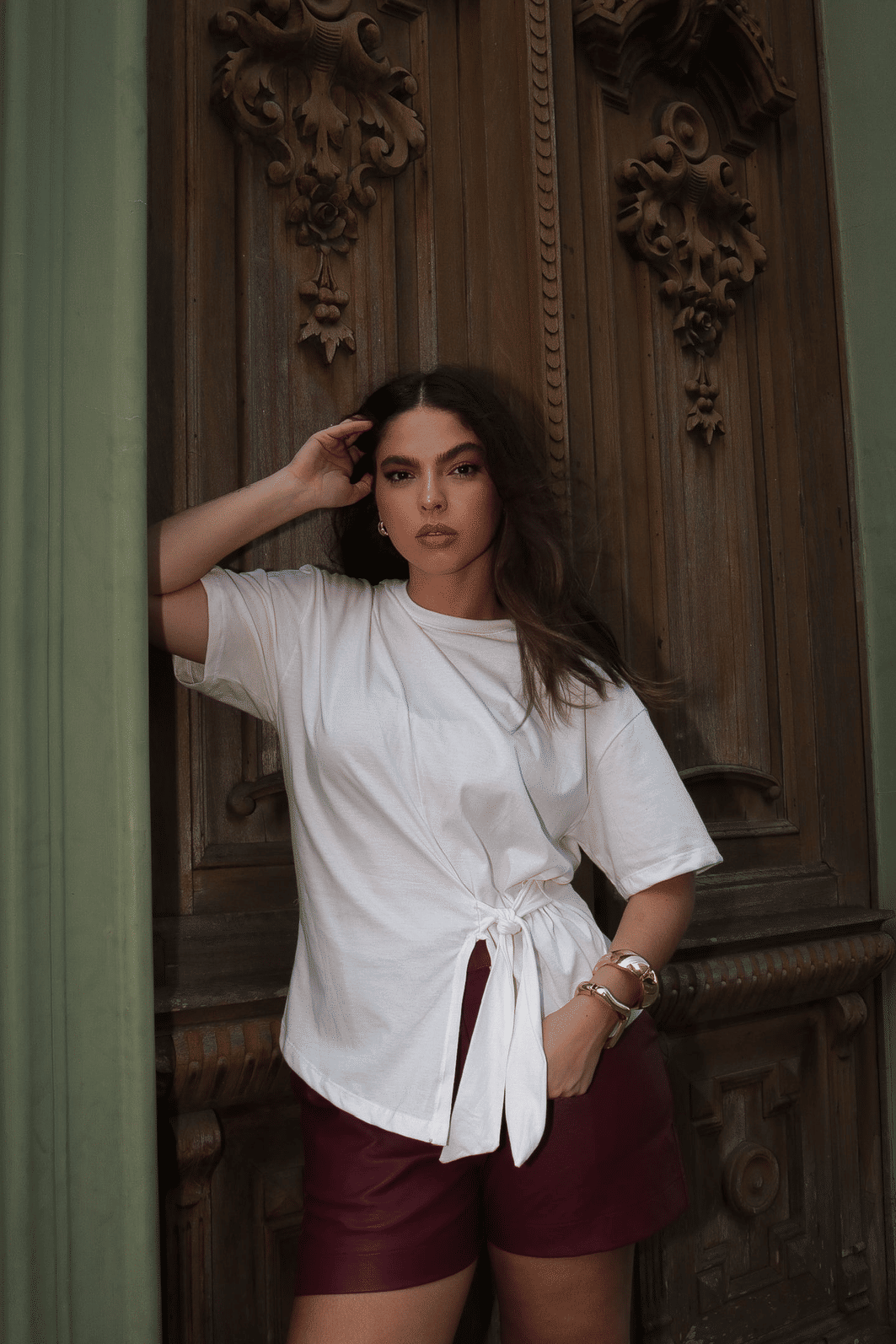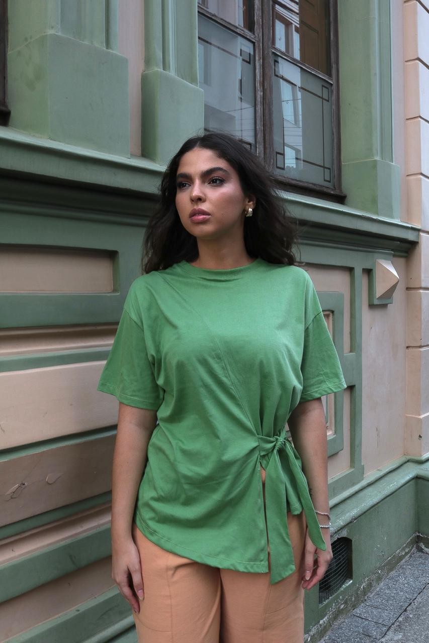 AdicionarT-shirt Feminina Paloma verde oliva marrom off white vermelha e preto, moderna e com detalhe transpassado
